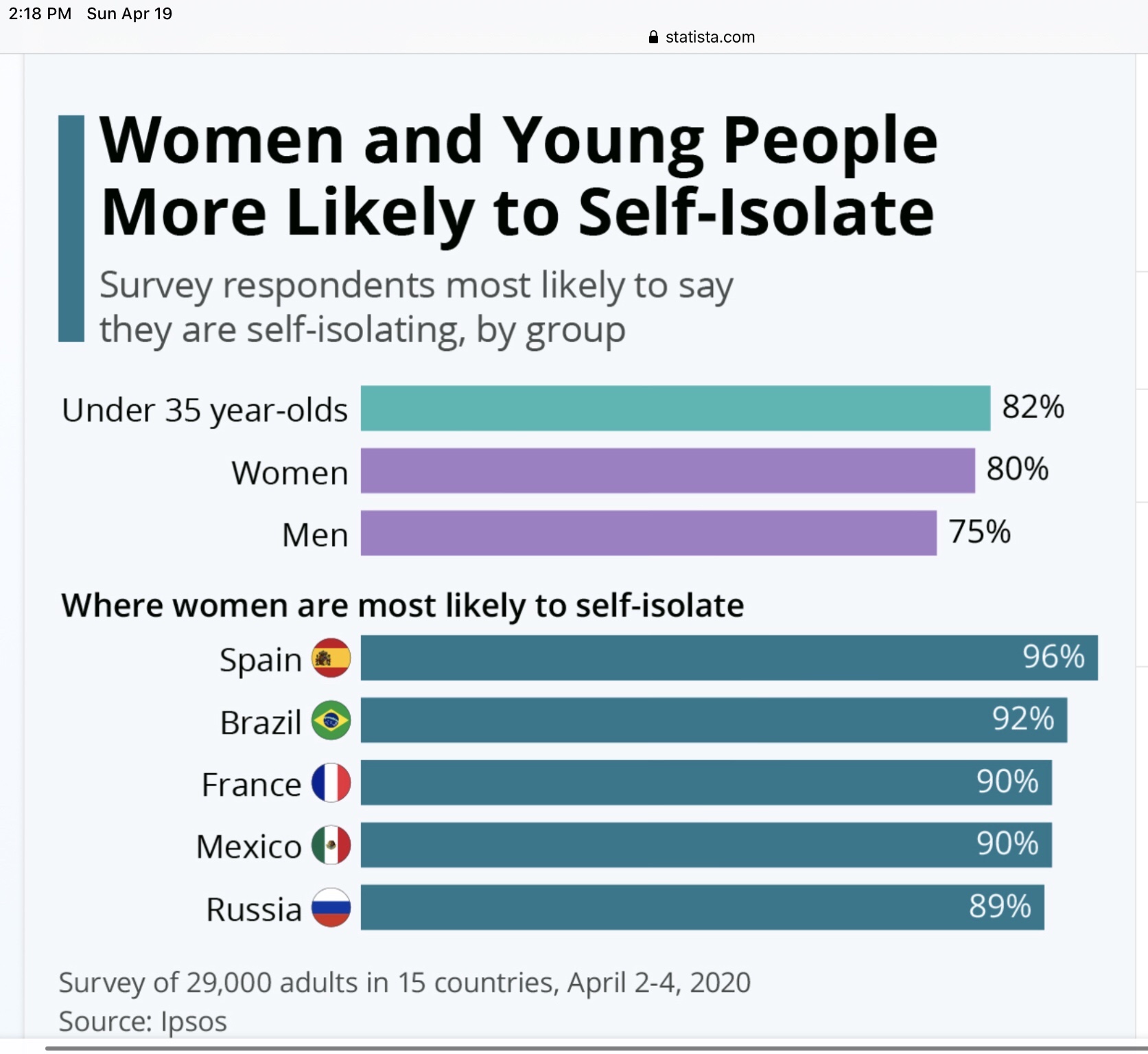 Stat #1 – Ever wonder which sex is more likely to self-isolate? Wonder no more: