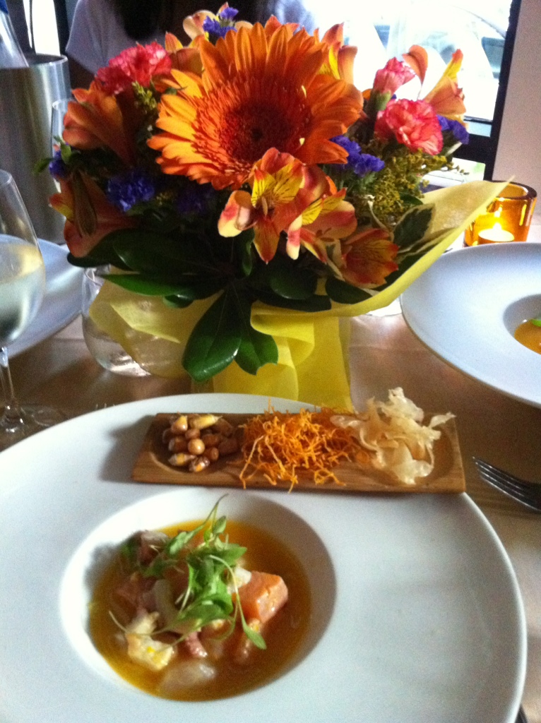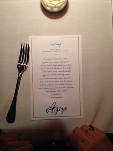 An excellent choice as it turns out. The 12 course meal is well prepared, well served – and very interesting. I thought only one of the dishes wasn’t an absolutely standout – which is probably a record. My favourite courses were the “meet the chef” which had us up at a ‘chef’s table’ in front of the kitchen enjoying a soup made with expertly seasoned freshly made noodles, and a quail egg, the Asian style tuna that was yummy to the last dribble, and BBQ quail and lobster tail combo that hit all the right notes.