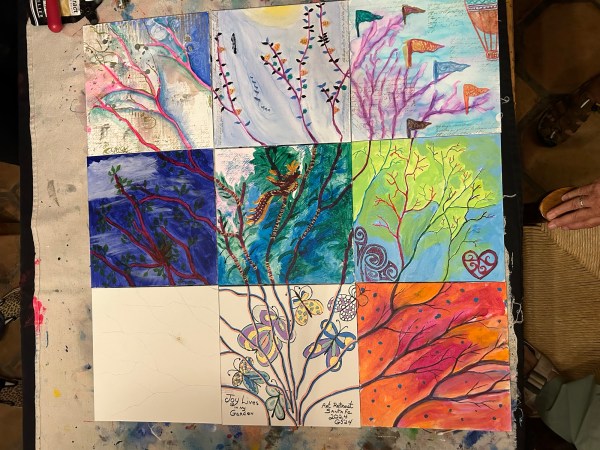 It’s Friday and to be honest – I only know because I looked at the calendar on my iphone. The time here has been distorted – periods of extreme focus while painting or visiting serious museums or Georgia O’Keeffe’s home – or times of relaxing and chatting. It seems that every day I learn something new about the BadAss ladies who are here on Retreat with me. I’m reminding of peeling onions – layers and layers…