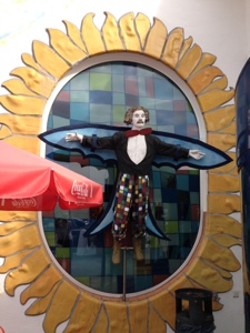1:36 PM – I hand him the saw – and hold the leg steady against the thrashing of the patient. He saws thru the leg – then hands me the part of the leg with the foot attached to show the spectators! I hold it above my head – then toss it to the ground to help cap the wound.