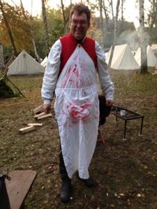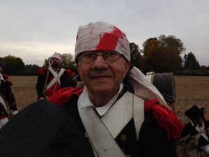 10:00 AM (day of the battle) – We gather again at the bivouac site – we’ve eaten a good breakfast, and our support teams of vivandieres have prepared some slices of sausage for us to take with. As the Chirurgien Aide-Major (that’s Surgeon 2nd Class to you) – I prepare bandages in case the battle goes against us, and make sure I have plenty of water. Keeping the soldiers hydrated is one of my most important duties. And I practice amputations – besides putting on a bandage – as battle field doctors we’re more likely to have to cut off an arm or a leg then just about anything else.