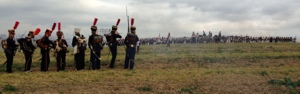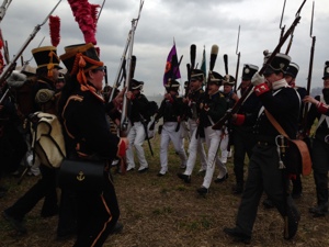 10:45 AM – We march back to the ‘re-grouping’ area – and all the members of the troops fighting on the French side are assembled. Again – over 2000 strong – we’re looking good. No sign of any opponents yet – and that’s probably a good thing. I’m beginning to get nervous – and I’ve run out of water already. A fast trip to refill my bottles – then we’re off on our slow march to the battle field. Cheering crowds surround us en-route – and we feel like heroes. We’ve yet to lose a battle – are we perhaps feeling a bit too confident?