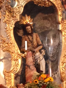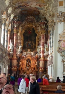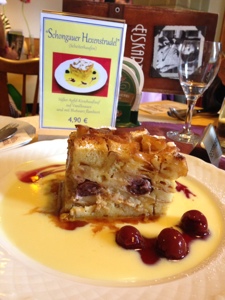 The Church boggles the mind – it’s a whirlwind of Rocco madness. If you’ve seen one cherub – you’ve seen a hundred. After our walk thru, and hungry for lunch, we popped into the restaurant just opposite the door to the church. Surprisingly yummy – I opted for dessert – HexenStrudel – and I had the best meal! Oh it delcious. Color me content if there a nice sweet cake to enjoy.